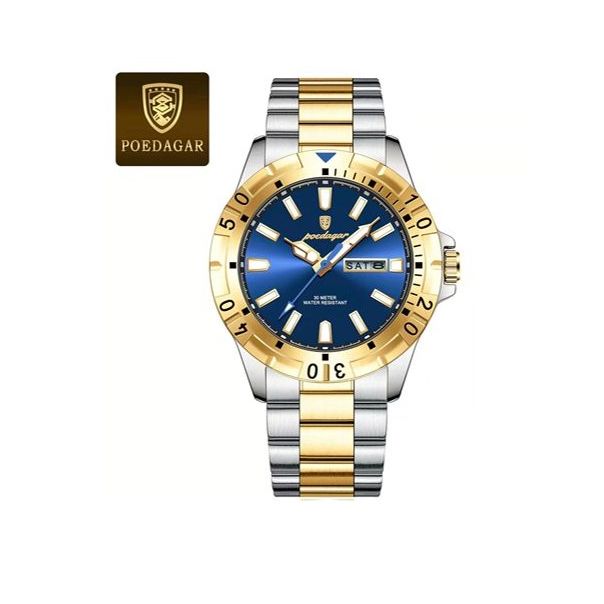 Product details of POEDAGAR 959 Exclusive Men’s Wrist Watch Water Resistant Full Calendar Stainless Steel Bracelet Fashionable Quartz WatchBrand Name: POEDAGARModel Number: 959Place of Origin: GuangdongMovement: Quartz, Japan MovementFeature: Day & Date, LuminousDial Window Material Type: Hardlex Crystal Clear Coated GlassDial Diameter: 42mmCase Shape: RoundBand Width: 21mmBand Length: 20cmWatch Weight: Around 125gm ApproxCase Thickness: 11mmType: CHARM, Fashion, Luxury, sport, BusinessBand Material Type: Stainless steelCase Material: Stainless SteelDial Display: Pointer Single IndexGender: MenWatch Colour: Gold Green, Two Tone Gold, Silver Green, Silver BlueColour Quality: High Quality Electroplating Colour Watch Condition: Full Brand New Intact WatchBrand Name: POEDAGARModel Number: 959Place of Origin: Guangdong, ChinaMovement: Quartz, Japan MovementFeature: Day & Date, LuminousDial Window Material Type: Hardlex Crystal Clear Coated Glass Dial Diameter: 42mmCase Shape: RoundBand Width: 21mmBand Length: 20cmWatch Weight: Around 125gm ApproxClasp Type: Push Button Hidden Clasp (Butterfly Push Lock)Water Resistance Depth: 30m (Can Wash Without Any Doubt)Case Thickness: 11mmType: CHARM, Fashion, Luxury, sport, BusinessBand Material Type: Stainless steelCase Material: Stainless SteelDial Display: Pointer Single IndexGender: MenWatch Colour: Gold Green, Two Tone Gold, Silver Green, Silver BlueColour Quality: High Quality Electroplating Colour