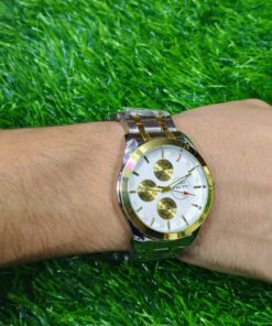 Product details of Analog Wrist chain Stainless Steel Watch Watch – BlackProductType: Analog WatchGender: MenDial color: same picDate View : YesBand Material Type: Stainless SteelCase Material: AlloyCase Shape: RoundBand Size: MenโsStandardDisplay Type: AnalogCondition: Brand New