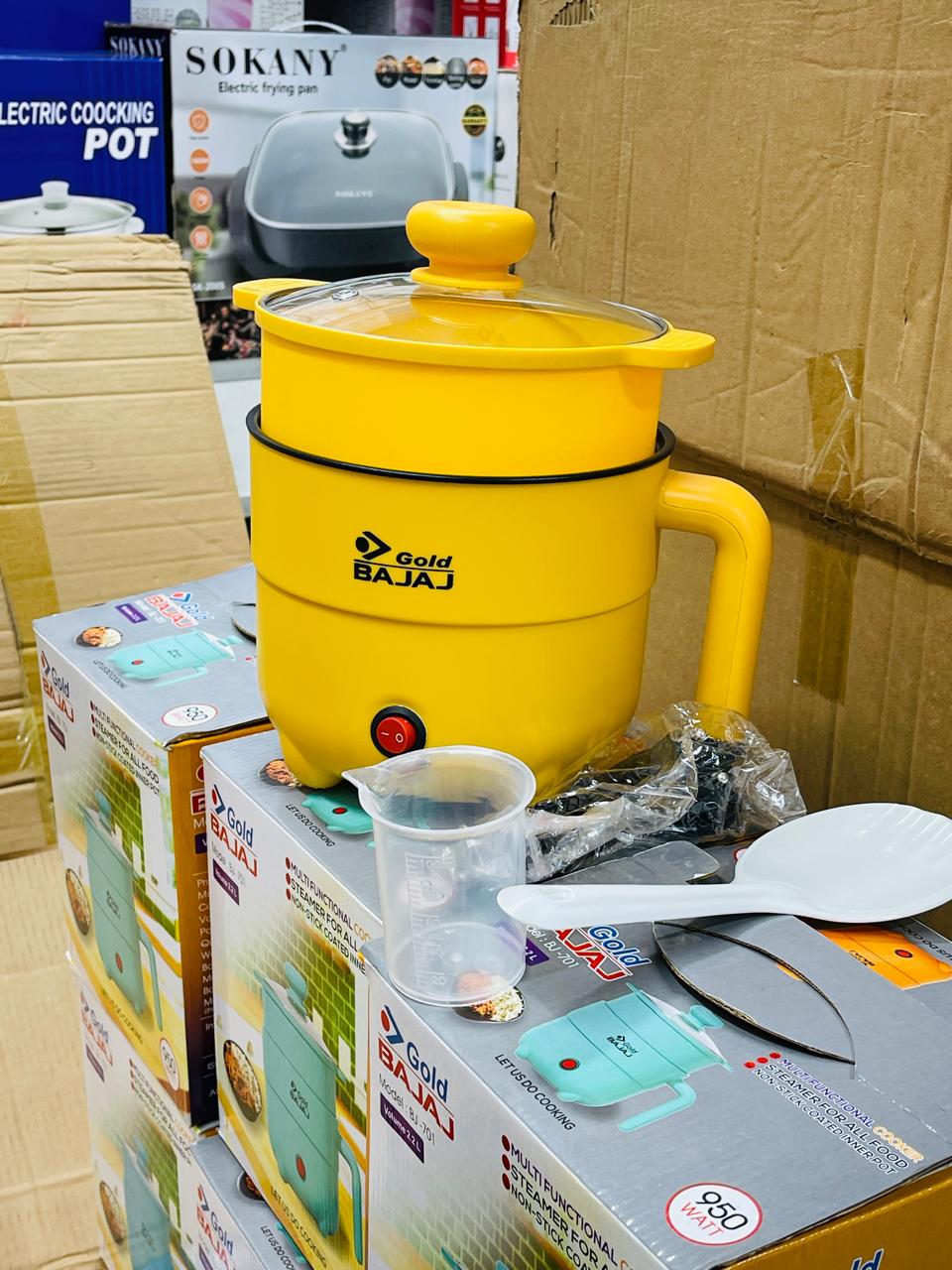 Bajaj multifunctional electric cooking potবাজাজ মাল্টিফাংশনাল ইলেকট্রিক কুকিং পট – ছোট পরিবার বা একক ব্যক্তির জন্য আদর্শ একটি আধুনিক রান্নার সমাধান। এই পোর্টেবল কুকিং পটে আপনি সহজেই ভাত, নুডলস, ডিম, স্যুপ, সবজি বা ছোট খাবার রান্না করতে পারবেন — এক যন্ত্রেই সবকিছু!উচ্চমানের স্টেইনলেস স্টিল বডি এবং নন-স্টিক কোটিং যুক্ত হওয়ায় এটি পরিষ্কার করা সহজ এবং দীর্ঘস্থায়ী। এর কমপ্যাক্ট ও স্টাইলিশ ডিজাইন আপনার রান্নাঘরকে আরও আকর্ষণীয় করে তুলবে।এই ইলেকট্রিক কুকিং পটটি ভ্রমণ, অফিস, বা হোস্টেল ব্যবহারের জন্যও অত্যন্ত সুবিধাজনক।কম বিদ্যুৎ খরচে দ্রুত রান্না — এখন রান্না হবে আরও সহজ ও স্মার্ট!🔹 বৈশিষ্ট্য:মাল্টিফাংশনাল ব্যবহার (রাইস কুকার, স্যুপ মেকার, নুডলস কুকার)স্টেইনলেস স্টিল বডি ও নন-স্টিক ইননার পটপোর্টেবল ও সহজে বহনযোগ্যদ্রুত ও নিরাপদ রান্না প্রযুক্তিআধুনিক ও আর্কষণীয় ডিজাইন✨ আপনার ছোট পরিবারের জন্য আদর্শ রান্নার সঙ্গী — Gold Bajaj Multifunctional Electric Cooking Pot!