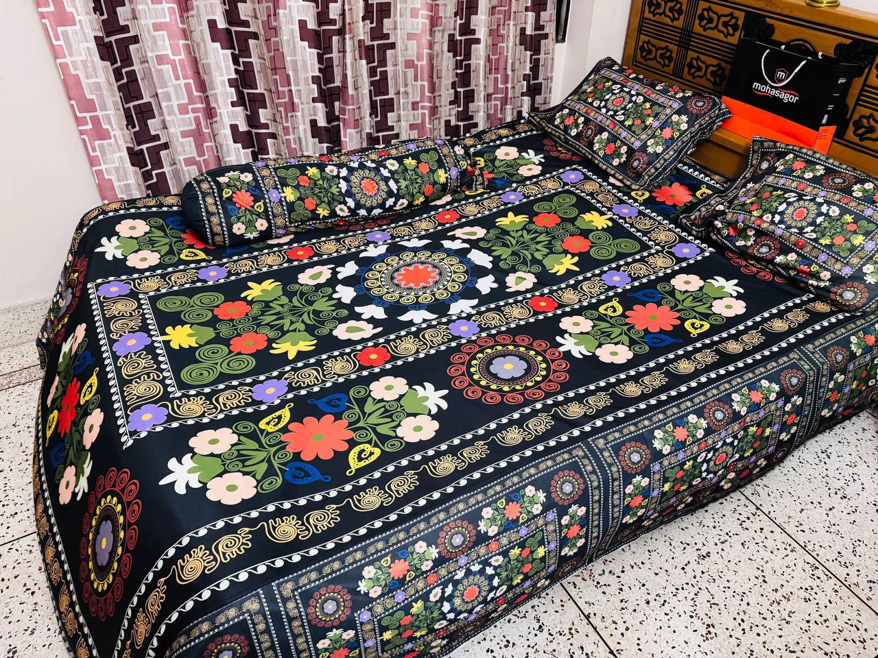 “চীনের প্রিমিয়াম 3D ডিজাইন বেডশিট””- ঘরে আনুন আরামের সাথে রঙিন আধুনিকতার ছোঁয়া! আপনার শোবার ঘরে আনুন প্রিমিয়াম চীনা 3D ডিজাইনের বেডশিট যা শুধু আরামই নয়, ঘরের সুন্দর্য ও বাড়ায় ।চীনা নকশার সাথে উচ্চ মানের ফিনিশিং আপনার ঘরে এনে দেবে আধুনিকতার ছোঁয়া।👉এই চাদরের বিশেষত্ব: আকর্ষণীয় ডিজাইন:চীনা 3D বেডশিট প্রিমিয়াম মানের ডিজাইনের যা আপনার ঘরকে দিবে এক নতুন দৃশ্য। আমাদের কাছে এই চাদরের রয়েছে বিভিন্ন রকমের ডিজাইন । প্রতিটি ডিজাইন অত্যন্ত আকর্ষণীয় এবং আধুনিক স্টাইলের সাথে সামঞ্জস্যপূর্ণ।প্রিমিয়াম ফ্যাব্রিক:উন্নতমানের চায়না ভেলভেট কাপড়ে তৈরি, যা আপনার ঘুমের অভিজ্ঞতাকে করবে আরও আরামদায়ক এবং মসৃণ।বড় সাইজ:বেডশিটটির দৈর্ঘ্য ৮ ফুট এবং প্রস্থ ৭.৫ ফুট, যা বড় আকারের বিছানার জন্য একেবারে পারফেক্ট। এতে বিছানা সম্পূর্ণ ঢাকা পড়বে এবং দেখাবে আকর্ষণীয়।সম্পূর্ণ সেট:প্যাকেজে থাকছে ১টি বেডশিট, ২টি বালিশের কাভার এবং ১টি সাইড পিলো কাভার, যা আপনার বিছানার পুরো সেটিংকে করে তুলবে পরিপূর্ণ;চমৎকার ফিনিশিং যা বেডশিটেকে টেকসই করে এবং মাধুর্যতা বাড়ায়, বারবার ধোয়ার পরও রঙ এবং নকশা থাকে উজ্জ্বল।চীনা শৈল্পিকতা:চীনা নকশার সমৃদ্ধতা ও আধুনিকতার মিশেলে তৈরি এই বেডশিটটি ঘরের ইন্টেরিয়ারকে দেবে এক ইউনিক স্টাইল। 👉তাই আর দেরি না করে আজই অর্ডার করুন এবং আপনার বেডরুমের সৌন্দর্য বাড়ান । 🔔 বিশেষ দ্রষ্টব্য:– এই বেডশিটগুলো ওয়াটারপ্রুফ নয়।- এইগুলো পানিতে ভিজিয়ে ধোয়া যাবে।- দুই পাশে ১ ফুট করে ২ ফুট জোড়া থাকবে।