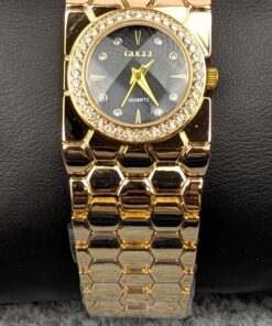 Elegant Golden Ladies Quartz Watch with Crystal Bezel – Premium Bracelet Design (Black Dial)✨ This is an attractive and stylish ladies’ watch.Product Description:Type: Ladies Quartz WatchDesign: Round dial with sparkling crystal-studded bezelColor: GoldenStrap: Premium metallic bracelet with honeycomb patternDial: Golden shade with quartz movementStyle: Perfect for parties, daily wear, or giftingSpeciality: Lightweight, stylish, and long-lasting design👉 A fashionable choice for women who love elegance and sophistication. 🔑 Meta Keywords:Luxury Ladies Watch, Golden Quartz Watch, Stylish Women’s Wrist Watch, Stone Studded Watch, Fashionable Women Watch, Elegant Ladies Quartz, Party Wear Watch, Premium Women Wrist Watch, Golden Bracelet Watch, Trendy Ladies Watch