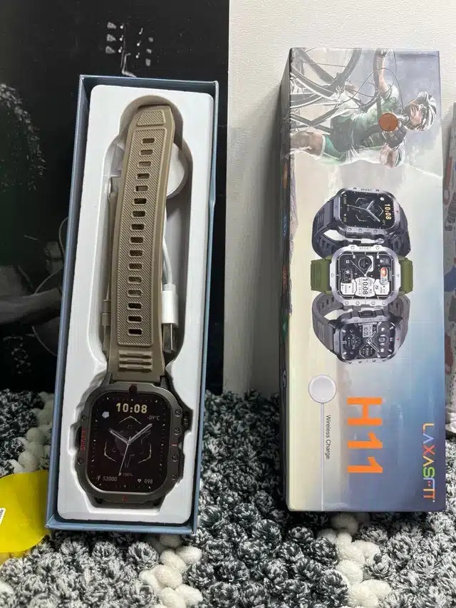 H11 Sports smart watch✅ Rugged & Stylish Design – Built for adventure and durability ✅ Wireless Charging – Hassle-free power-up ✅ Sports & Fitness Tracker – Track steps, heart rate, calories, and more ✅ Bluetooth Calling – Answer calls directly from your wrist ✅ IP67 Waterproof – Splash and sweat-resistant ✅ Multiple Watch Faces – Customize your style ✅ Long Battery Life – Stay powered for days ✅ Sleep & Health Monitoring – Get insights into your well-being