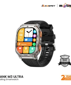 CategorySpecificationBrandKOSPETModelTANK M3 Ultra Calling Rugged SmartwatchMilitary CertificationUS MIL-STD 810H (15 items)Language SupportBangla supportedCallingBluetooth CallingWaterproof Rating5ATM & IP69K (supports swimming & diving)DesignRugged patented designGlass3rd Gen Corning Gorilla GlassDisplay1.96″ AMOLEDGPSDual-band (L1+L5), 6 satellite positioning systemSports Modes170+ with smart recognitionBattery Capacity480mAhBattery LifeStandby: 50 daysApp SupportKOSPET FIT