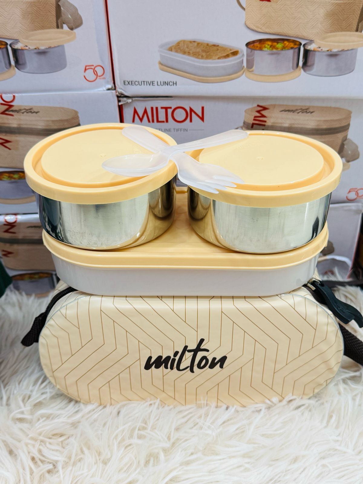 Product details of Lunch Box 2 Steel & 1 Microwave Safe Plastik Box100 percent leak proof round containerBelt to easy carryingContent remains hot for hourMade in india3 boxSpecifications of Lunch Box 2 Steel & 1 Microwave Safe Plastik BoxBrandBrand MiltonSKU408371723_BD-2020233910MaterialStainless Steel