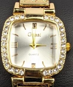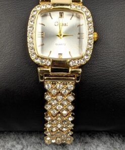 Luxury Golden Stone Studded Ladies Quartz Watch – Stylish & Elegant Design (White Dial)✨ This is an attractive and stylish ladies’ watch.Product Description:Type: Ladies Luxury Quartz WatchDesign: Square-shaped dial with sparkling stone setting all aroundColor: GoldenStrap: Stone-studded metal strapDial: Silver-gold combination with quartz movementSpeciality: Perfect for parties, casual outings, or as a giftStyle: Fashionable, trendy, and elegant design👉 This watch will enhance your personality and make you look even more attractive. 🔑 Meta Keywords:Luxury Ladies Watch, Golden Quartz Watch, Stylish Women’s Wrist Watch, Stone Studded Watch, Fashionable Women Watch, Elegant Ladies Quartz, Party Wear Watch, Premium Women Wrist Watch, Golden Bracelet Watch, Trendy Ladies Watch