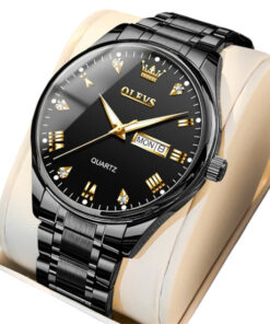 Olevs 5563 Chain Watch – Black for MenCommand attention with the timeless elegance of the Olevs 5563 Chain Watch in black. Designed for the modern gentleman, this watch blends refined aesthetics with practical features, offering a sophisticated statement for any occasion.Key FeaturesBold and Classic DialFeatures a sleek black dial accented with Roman numeral hour markers and luminous hands, creating a sharp, sophisticated look suitable for both formal and casual wear.Premium Stainless Steel BuildCrafted with a durable stainless steel case and matching chain-style bracelet for long-lasting wear and a polished, masculine finish.Precision Quartz MovementPowered by a reliable quartz movement, ensuring accurate timekeeping with minimal maintenance.Multi-Function DisplayEquipped with a full calendar and day-of-the-week display, providing added functionality without cluttering the dial.Scratch-Resistant GlassProtected by a high-hardness coated glass window for enhanced durability and clear visibility.Everyday Water ResistanceWith 3 ATM (30 meters) water resistance, the watch is safe from splashes, rain, and daily moisture exposure.Comfort-Focused DesignSlim case profile at just 9.5 mm thick, paired with an 18 mm wide and 20 cm long band for a comfortable and secure fit.Refined Clasp ClosureFeatures a push-button hidden clasp that offers a seamless, secure fastening mechanism.Backed by WarrantyIncludes a 1-year warranty for added peace of mind and reliability.Technical SpecificationsSpecificationDetailsMovementQuartzDial Diameter40 mmCase Thickness9.5 mmBand MaterialStainless SteelBand Width18 mmBand Length20 cmDial Window MaterialCoated Hardness GlassWater Resistance3 ATM / 30 metersFunctionsLuminous Hands, Calendar, Week DisplayClasp TypePush-Button Hidden ClaspWarranty1 Year Why Choose This Watch?Timeless Design: The all-black aesthetic with Roman numerals adds a refined, versatile edge to any outfit.Function Meets Style: Calendar and luminous features deliver practical utility without sacrificing elegance.Durability You Can Trust: Stainless steel construction and scratch-resistant glass offer lasting performance.Everyday Comfort: Slim and lightweight, it’s built to wear from morning to night with ease.Ideal ForMen seeking a stylish yet functional timepiece that complements professional attire, casual outfits, and everything in between. Whether you’re dressing up for an event or heading into the office, this watch delivers a confident, classic finish.Olevs 5563 Chain Watch – BlackA statement of elegance. A commitment to precision. A watch built for the modern man.