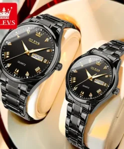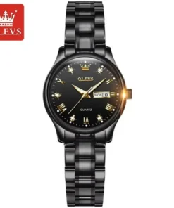 Olevs 5563 Chain Watch – Black for WomenIlluminate your wrist with the elegance of the Olevs 5563 Chain Watch in Black—a sleek fusion of modern minimalism and refined design. Crafted with a poised silhouette and thoughtful details, this timepiece complements both everyday wear and special occasions.Key FeaturesStylishly Compact DesignThe 29 mm round dial paired with Roman numeral accents (where applicable) offers a timeless and polished aesthetic, perfectly tailored for the modern woman.Premium Build QualityBuilt with a durable alloy case and a stainless steel textured bracelet in black, this watch balances sophistication with reliable daily wearability. Weighting just around 58 g, it ensures a light, comfortable fit.Reliable Quartz MovementEquipped with a precise quartz movement, the watch guarantees accurate timekeeping with minimal upkeep.Useful Display FunctionsEnjoy practical features including a complete calendar display, day-of-the-week indicator, and luminous hands for visibility in dim light.Durable Glass ProtectionThe dial is safeguarded by a high-hardness coated glass mirror, offering scratch resistance and clarity.Water ResistantRated at 3 Bar (30 meters), it’s engineered to withstand splashes and incidental exposure to moisture—ideal for everyday use.Slim & Comfortable FitWith a case thickness of 9.5 mm, band width of 14 mm, and total band length of approximately 19 cm, this watch provides a sleek and flattering fit.Elegant ClaspFeatures a push-button hidden clasp that ensures a secure and refined closure.Peace of Mind WarrantyBacked by a one-year warranty for added assurance and customer satisfaction.Technical SpecificationsSpecificationDetailsMovement TypeQuartzDial Diameter29 mmCase Thickness9.5 mmBand Material & TypeStainless Steel (Textured Bracelet), Alloy CaseBand Width14 mmBand Length~19 cmGlass TypeCoated Hardness MirrorWater Resistance3 Bar / 30 metersDisplay FunctionsComplete Calendar, Week Display, Luminous HandsClasp TypePush‑Button Hidden ClaspWeight~58 gWarranty1 Year Why This Watch Stands OutCompact & Chic: Designed for elegance and wearability, perfect for both professional and casual occasions.Functionally Sophisticated: Calendar and luminous features add practicality without detracting from style.Durable, Lightweight Construction: Built to last and designed for comfort, even during long hours of wear.Understated Luxury: Black-on-black styling with premium materials conveys sophistication without being ostentatious.Ideal ForWomen seeking a sleek, stylish, and practical timepiece that bridges the gap between casual charm and formal elegance. This watch is perfect as a versatile accessory for daily wear or a meaningful gift for birthdays, anniversaries, and celebrations.Elevate your everyday ensemble with the Olevs 5563 Chain Watch in Black—where modern refinement meets timeless reliability.