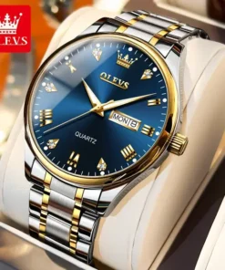 Olevs 5563 Chain Watch – Blue Dial for MenElevate your everyday style with the Olevs 5563 Chain Watch — a perfect blend of modern sophistication and timeless design. Featuring a bold blue dial with classic Roman numeral hour markers, this watch is crafted for the modern gentleman who values both function and elegance.Key FeaturesSophisticated Blue DialThe deep blue dial is enhanced with Roman numeral indices, giving it a refined and luxurious aesthetic suitable for both formal and casual settings.Premium Stainless Steel ConstructionBuilt with a durable stainless steel case and matching chain-style bracelet, ensuring long-lasting performance and a polished look.Quartz Movement for AccuracyPowered by a precise quartz movement, this watch delivers consistent and reliable timekeeping with minimal maintenance.Multi-Function DisplayIncludes luminous hands for visibility in low light, a complete calendar, and day-of-the-week display—designed to keep you on track, effortlessly.Water ResistanceWith 3 Bar (30 meters) water resistance, it offers protection against daily splashes and moisture, making it suitable for everyday wear.Comfortable FitFeaturing a 40mm case diameter, 9.5mm slim case thickness, and a 20cm band length with an 18mm width—engineered for all-day comfort and style.Durable Coated GlassThe dial is protected by a scratch-resistant coated glass window, enhancing clarity while maintaining its elegant appearance.Secure Clasp DesignEquipped with a bracelet-style clasp that ensures a secure fit with a sleek finish.Technical SpecificationsSpecificationDetailsMovement TypeQuartz MovementDial Diameter40 mmCase Thickness9.5 mmBand MaterialStainless SteelBand Length20 cmBand Width18 mmDial Window MaterialCoated GlassWater Resistance3 Bar / 30 MetersDisplay FunctionsLuminous Hands, Calendar, Week DisplayClasp TypeBracelet ClaspWarranty1 Year Why Choose This Watch?Timeless Design: Roman numerals and a deep blue dial exude class and versatility.Everyday Ready: Water resistance and a durable build make it practical for daily wear.Function Meets Fashion: Offers essential features without compromising on style.Gift-Worthy Presentation: Ideal as a personal investment or a thoughtful gift for birthdays, anniversaries, or special occasions.Upgrade your wristwear with the Olevs 5563 Chain Watch — where elegance meets functionality. Perfect for those who appreciate classic design with a modern edge.