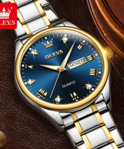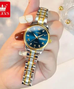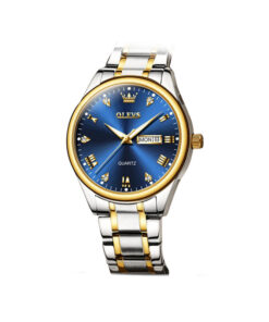 Olevs 5563 Luxury Fashion Round Women’s Watch – Silver & BlueChic Elegance Meets Everyday PrecisionMake a bold statement with the Olevs 5563, a luxury-inspired quartz watch featuring a stylish silver-and-blue two-tone design. Perfectly tailored for the modern woman, this timepiece delivers both functional sophistication and eye-catching elegance.Key FeaturesHigh-Precision Quartz MovementEnsures consistent timekeeping with minimal maintenance, combining accuracy and reliability.Elegant Round Dial (32 mm)Features a refined silver and blue color scheme with luminous hands and hour markers, offering clear readability in any light.Complete Calendar FunctionalityEquipped with easy-to-use day and date indicators, making it convenient for everyday scheduling.Durable Stainless-Steel Case & BandBuilt to last with polished stainless steel construction and a secure push-button hidden clasp for seamless wear.Scratch-Resistant Glass (Hardlex Coating)Protects the dial from everyday wear and maintains a clear, pristine appearance.Slim & Feminine DesignA sleek 11 mm case thickness and balanced proportions ensure both comfort and style.Water-Resistant (3 ATM / 30 m)Suitable for daily wear, including light rain and splashes (not ideal for swimming or bathing).1-Year Manufacturer WarrantyOffers peace of mind, knowing your purchase is backed by reliable support.SpecificationsFeatureDetailsMovementQuartzCase Diameter32 mmCase Thickness11 mmCase MaterialStainless SteelDial ColorsSilver & BlueBand MaterialStainless SteelClasp TypePush-Button Hidden ClaspGlass TypeHardened Mineral (Hardlex)Calendar DisplayDay & DateLuminous HandsYesWater Resistance3 ATM / 30 metersWarranty1-Year Official Warranty Why Choose the Olevs 5563?Stylish Two-Tone Design – The silver-gold and blue color palette radiates refined elegance, making this watch a versatile accessory for both casual and dressy ensembles.Reliable Everyday Wear – Built for longevity with sturdy materials and protective glass, while remaining comfortable with a slim profile.Practical Features in a Compact Design – The calendar and luminous hands are user-friendly enhancements without compromising the watch’s grace.Gift-Ready Luxury at an Accessible Price – Delivering a luxe look and feel, it makes a thoughtful and stylish gift for any occasion.Ideal For:Fashion-conscious individuals, gift-givers seeking elegance and value, or anyone looking for a reliable yet eye-catching wristwatch that embraces modern grace.