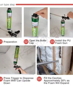 বন্ধ সেল (Closed-Cell): এতে বায়ু আটকে থাকে ছোট ছোট সেল বা কুঠুরিতে, ফলে জল বা বাতাস সহজে ঢুকতে পারে না।উচ্চ ঘনত্ব (High Density): এটি বেশি মজবুত ও টেকসই, চাপ সহ্য করতে পারে।জলরোধী: পানি শোষণ করে না।হালকা ও নমনীয়: যদিও শক্ত, তবুও নমনীয় থাকে।ব্যবহার:ফ্লোরিং ইনসুলেশনপ্যাকেজিংশব্দ নিরোধক (soundproofing)যন্ত্রপাতির কম্পন কমাতে🔫 ২. কাঠের স্প্রে ফোম (Spray Foam for Wood)এটি সাধারণত দুই ধরনের হয়:Open-cell (খোলা সেল): হালকা, বাতাস প্রবাহ করেClosed-cell (বন্ধ সেল): ঘন, জলরোধী, ইনসুলেশন ভালোকাঠের জন্য ব্যবহারের সুবিধা:কাঠের ফাঁকা জায়গা পূরণ করে দেয়তাপ ও শব্দ নিরোধক করেছাঁচ (mold) বা পোকা প্রতিরোধে সহায়ক🧴 ৩. প্রসারণযোগ্য পু ফোম (Expandable PU Foam)(PU = Polyurethane)বৈশিষ্ট্য:স্প্রে করার পর বাতাসের সংস্পর্শে এসে ফুলে উঠেফাঁকা জায়গা পূরণ করেশক্ত হয়ে যায়তাপ-শব্দ নিরোধককাঠ, ইট, কংক্রিট, ধাতু – সব কিছুর সাথে লেগে যায়ব্যবহার:জানালার চারপাশে ফাঁক বন্ধেদেয়ালে ফুটো বা গর্ত বন্ধেপ্লাম্বিং কাজের ইনসুলেশনে💡 তুলনামূলকভাবে:ফোম ঘনত্ব সেল টাইপ প্রধান ব্যবহারপলিথিন ফোম মাঝারি-উচ্চ বন্ধ সেল ইনসুলেশন, প্যাকেজিংকাঠের স্প্রে ফোম মাঝারি খোলা/বন্ধ সেল কাঠের ফাঁকা পূরণPU ফোম উচ্চ (প্রসারণের পর) বন্ধ সেল ফাঁকা পূরণ, ইনসুলেশন