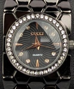 Stylish Black Ladies Quartz Watch with Crystal Bezel – Premium Bracelet Design (Black Dial)✨ This is an attractive and stylish ladies’ watch.Product Description:Type: Ladies Quartz WatchDesign: Round dial with sparkling crystal-studded bezelColor: GoldenStrap: Premium metallic bracelet with honeycomb patternDial: Golden shade with quartz movementStyle: Perfect for parties, daily wear, or giftingSpeciality: Lightweight, stylish, and long-lasting design👉 A fashionable choice for women who love elegance and sophistication. 🔑 Meta Keywords:Luxury Ladies Watch, Golden Quartz Watch, Stylish Women’s Wrist Watch, Stone Studded Watch, Fashionable Women Watch, Elegant Ladies Quartz, Party Wear Watch, Premium Women Wrist Watch, Golden Bracelet Watch, Trendy Ladies Watch